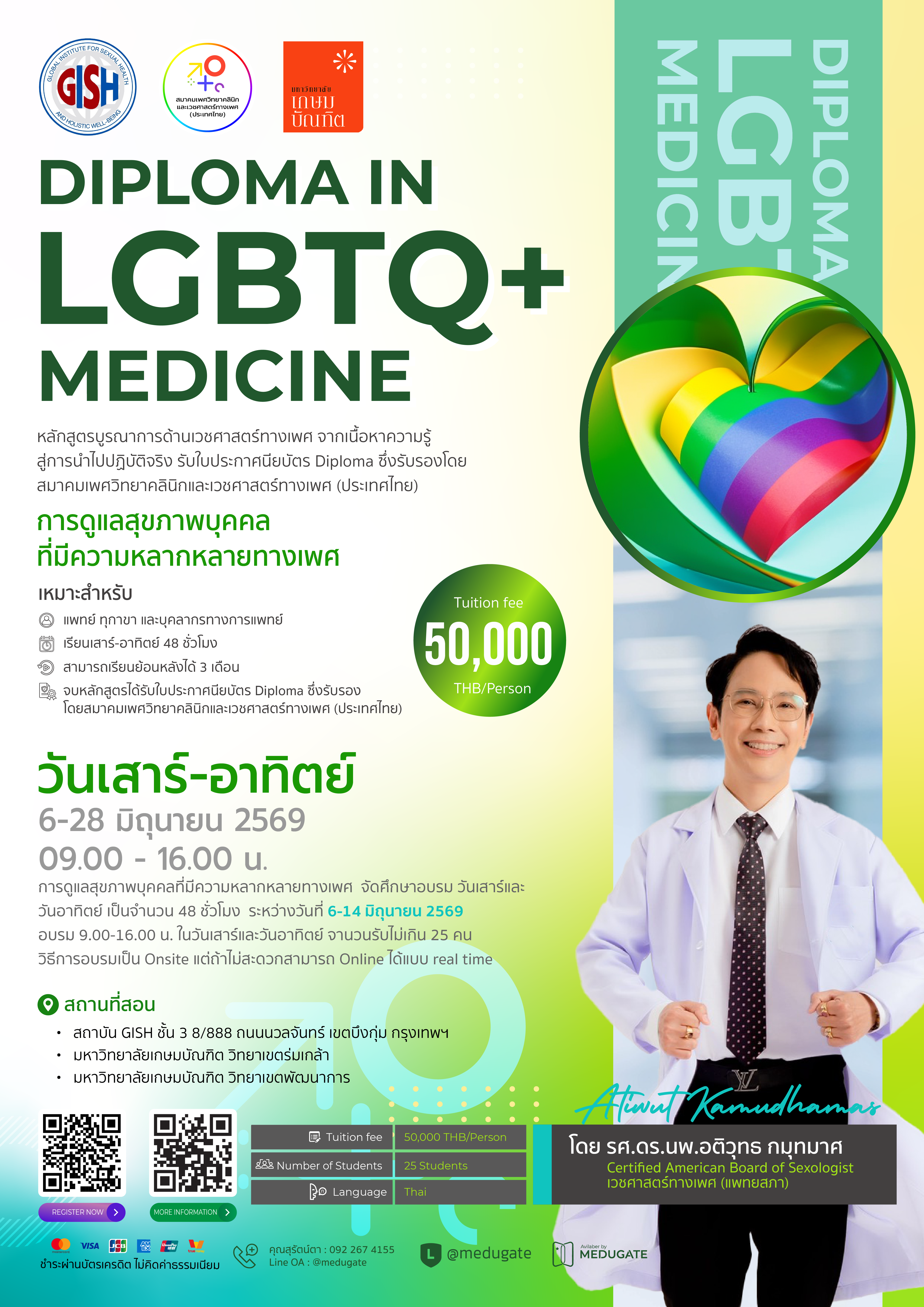 หลักสูตรการดูแลสุขภาพบุคคลที่มีความหลากหลายทางเพศ เน้นความเข้มข้นทางการแพทย์และสุขภาพเพื่อความรู้ความเข้าใจในการดูแลสุขภาพบุคคลที่มีความหลากหลายทางเพศ