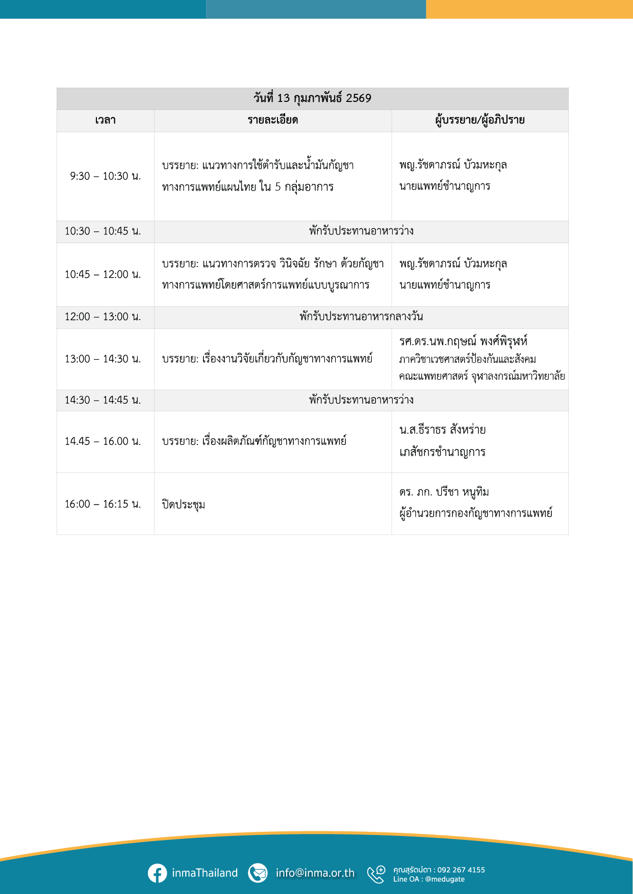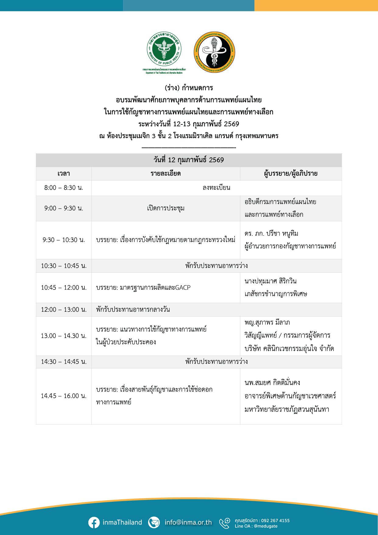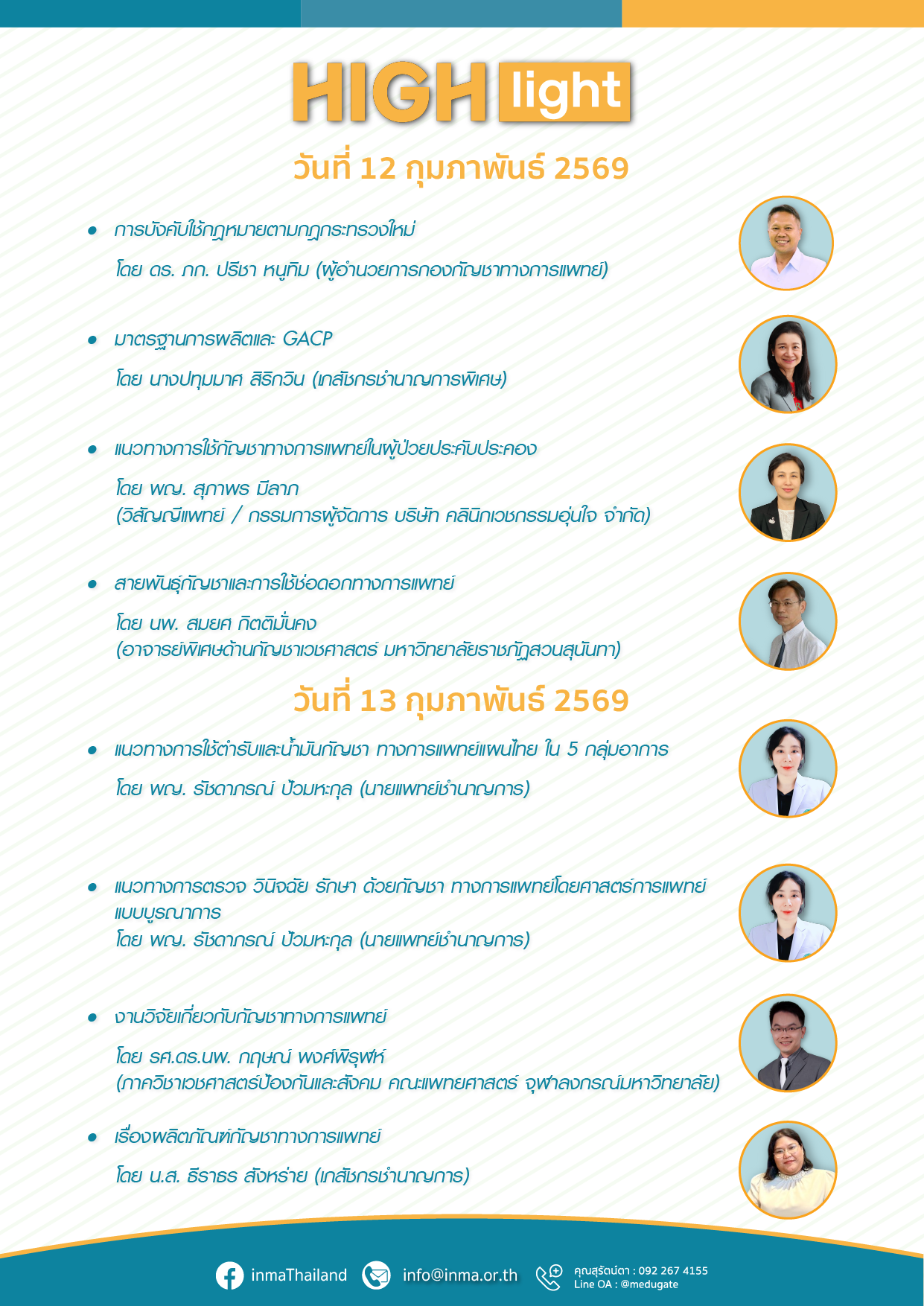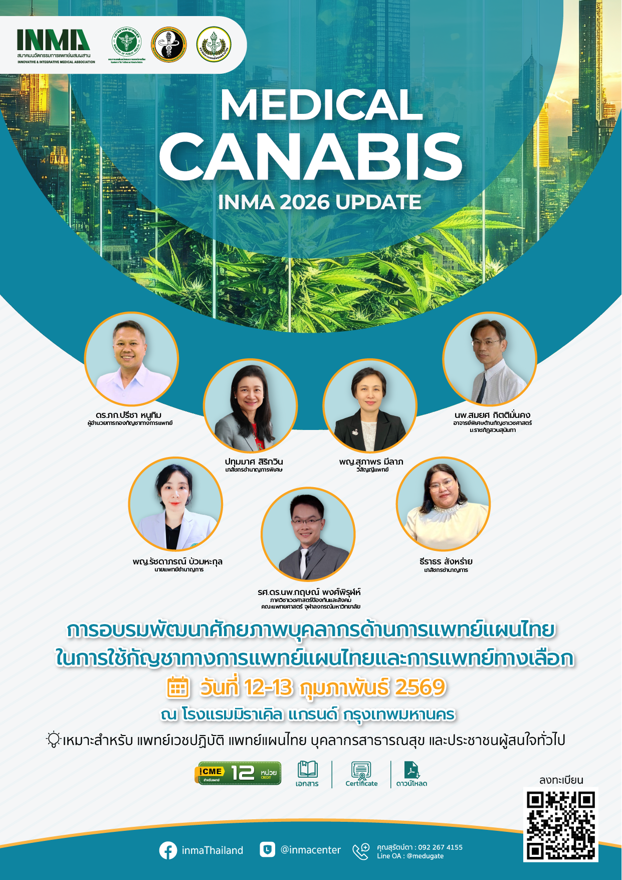 Medical Canabis INMA 2026 Updateการอบรมพัฒนาศักยภาพบุคลากรด้านการแพทย์แผนไทย ในการใช้กัญชาทางการแพทย์แผนไทยและการแพทย์ทางเลือก