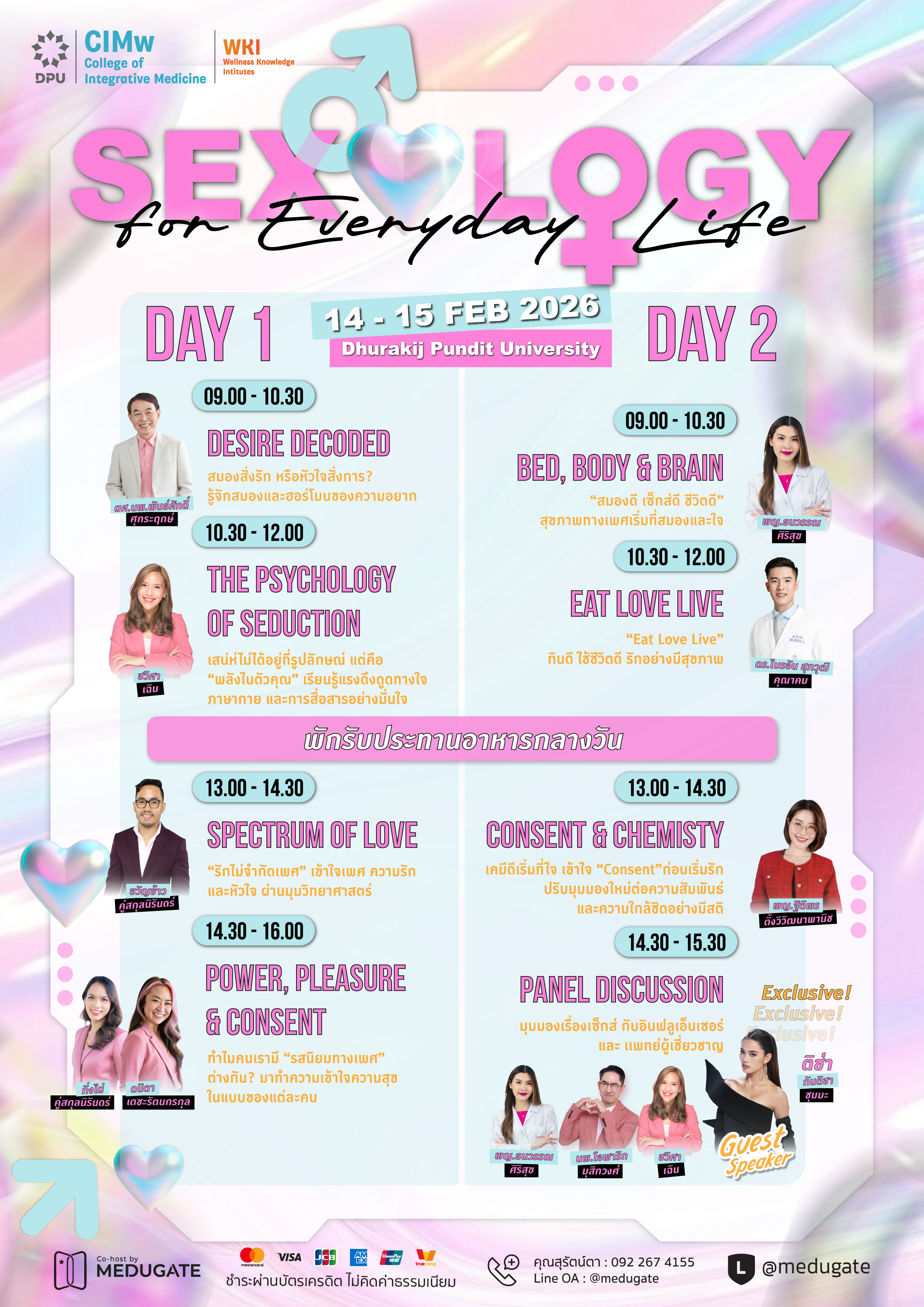 ขอเชิญทุกท่านเข้าร่วมงานสัมมนา Sexology for Everyday Life ซึ่งจะจัดขึ้นในวันที่ 14-15 กุมภาพันธ์ 2026 ที่ มหาวิทยาลัยธุรกิจบัณฑิตย์ ในการนี้ท่านจะได้ร่วมเรียนรู้จากวิทยากรที่มีประสบการณ์และเชี่ยวชาญด้านสุขภาพทางเพศ ความสัมพันธ์ และความเป็นอยู่ที่ดีในชีวิตประจำวัน โดยเรามีการนำเสนอหัวข้อที่น่าสนใจและหลากหลาย ซึ่งจะช่วยเสริมสร้างความเข้าใจในเรื่องของจิตวิทยาทางเพศ, ความสัมพันธ์, และการดูแลสุขภาพอย่างยั่งยืน