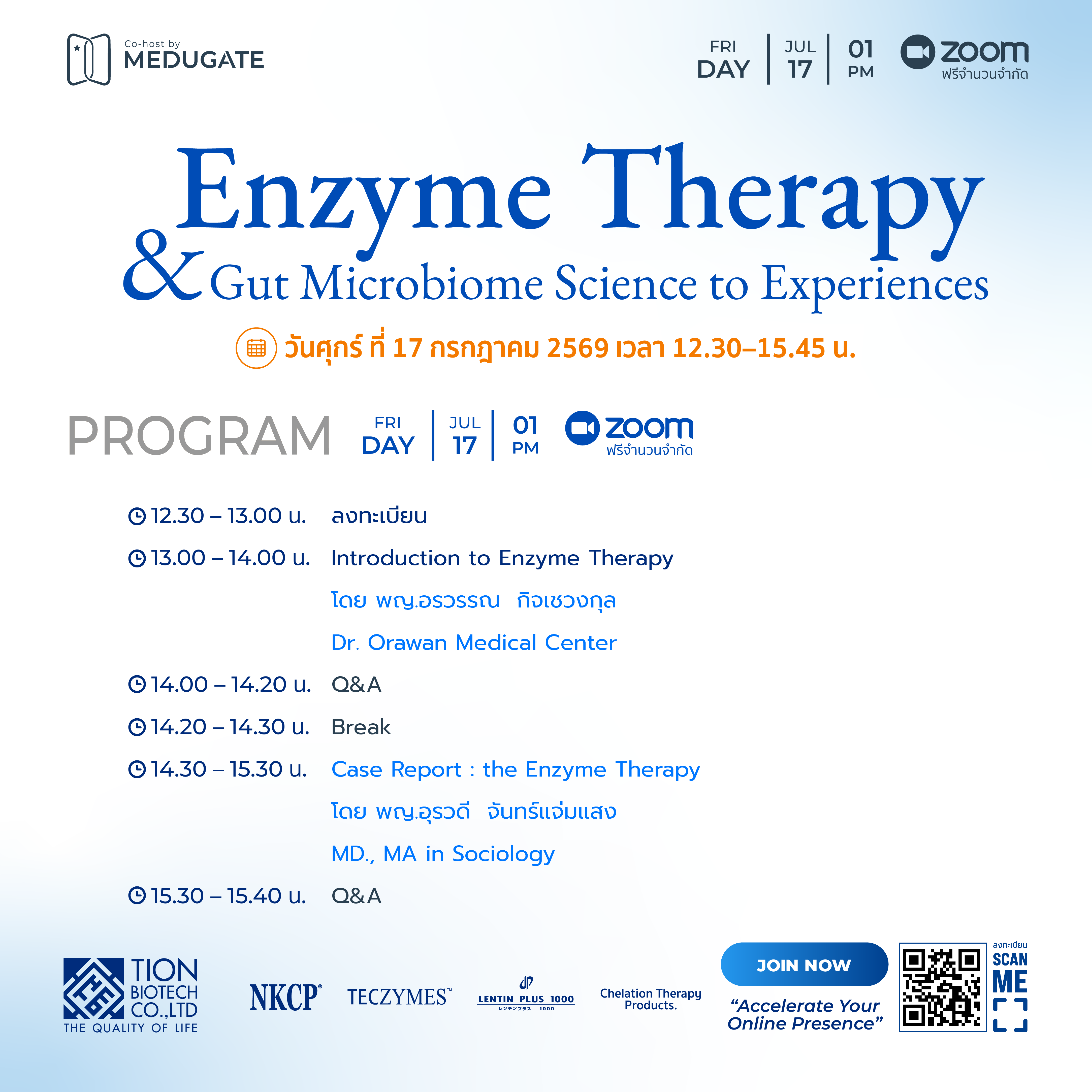 - 13.00 – 14.00 น. Introduction to Enzyme Therapy