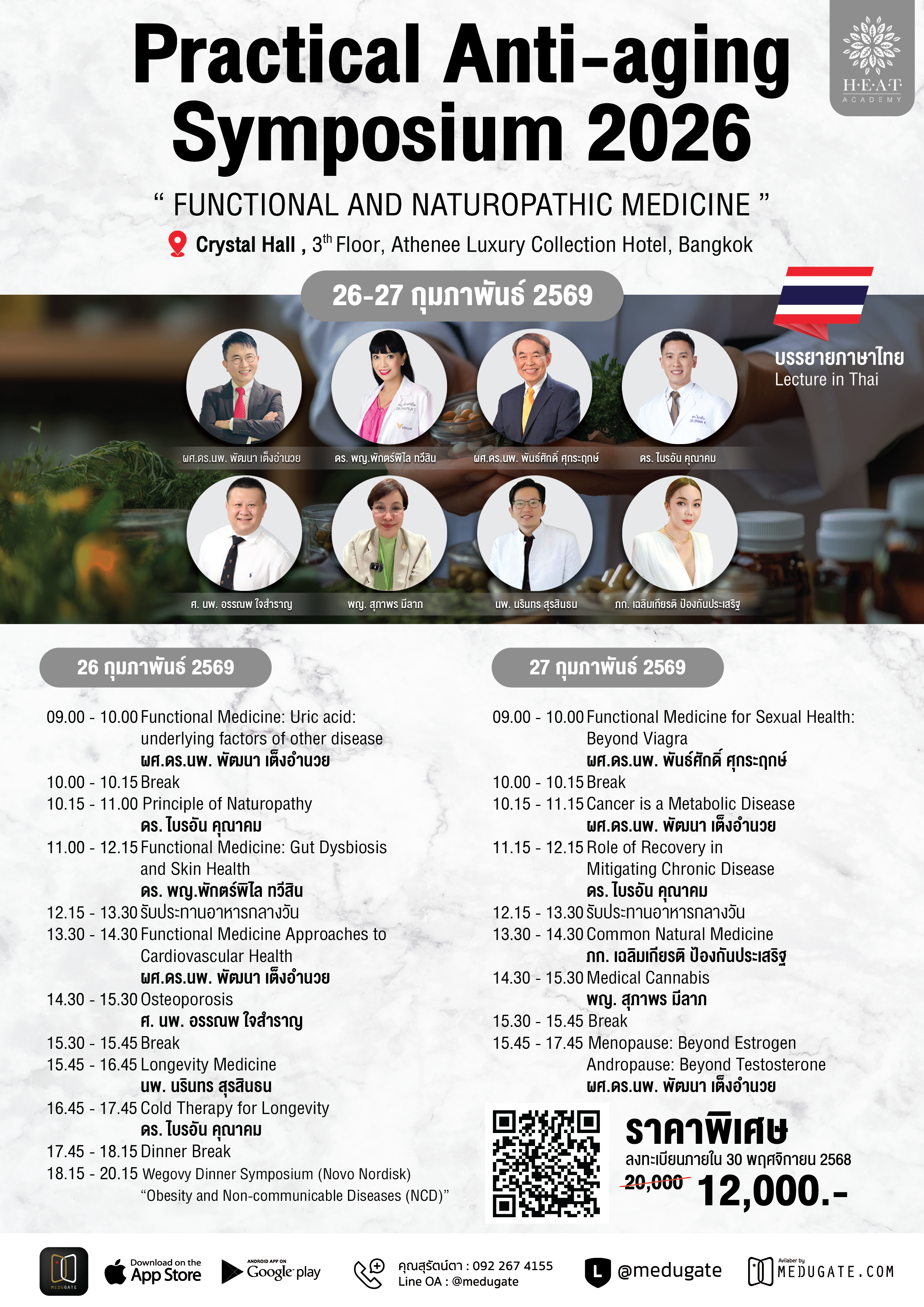 Stay ahead in the world of anti-aging and integrative medicine. Join us at the Crystal Hall, The Athenee Hotel, a Luxury Collection Hotel in Bangkok, on March 13h-14th, 2025.
