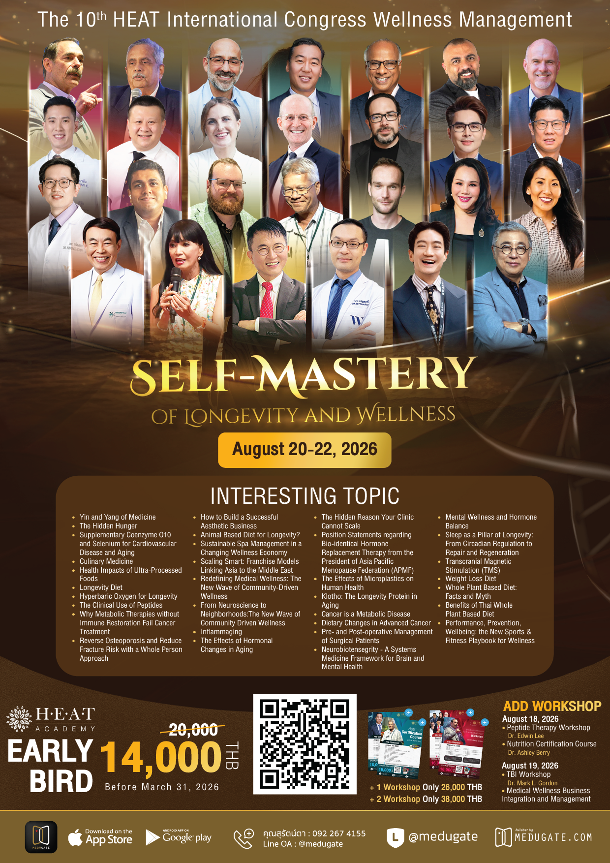 Discover the path to Self-Mastery of Longevity and Wellness at this world-class congress. This year’s theme highlights how conscious living can extend both lifespan and healthspan. Through insights into mind-body integration, lifestyle medicine, and personal accountability, you will learn transformative practices to enhance: