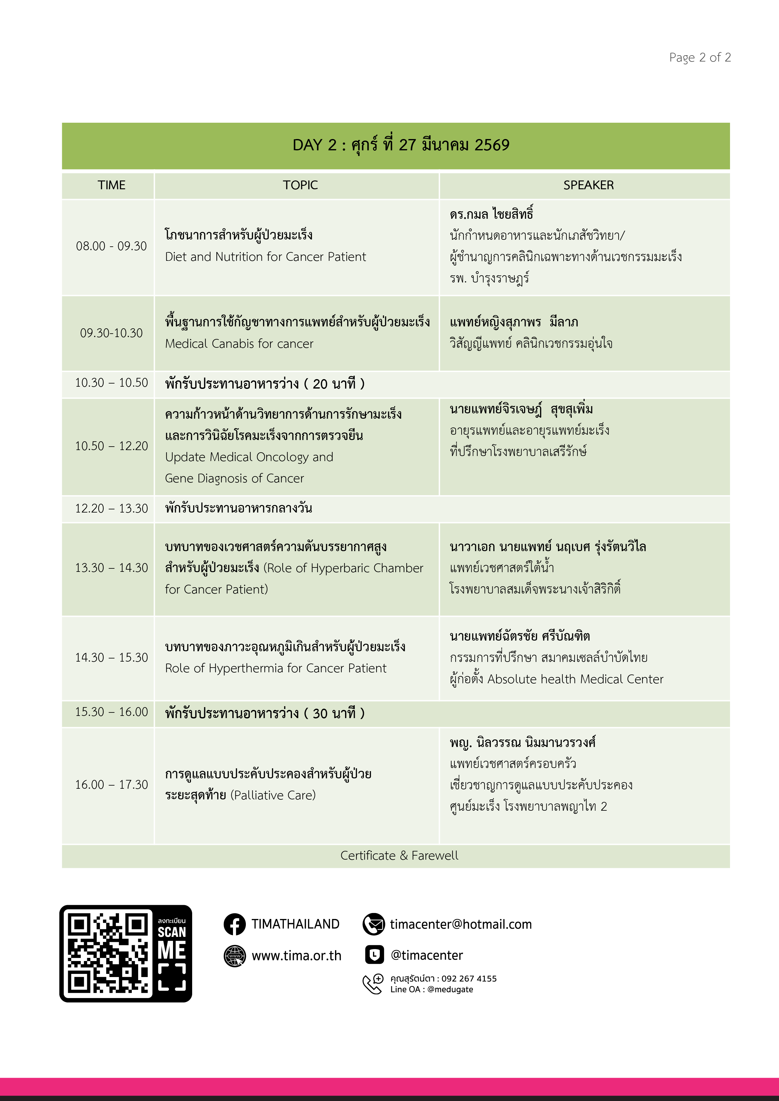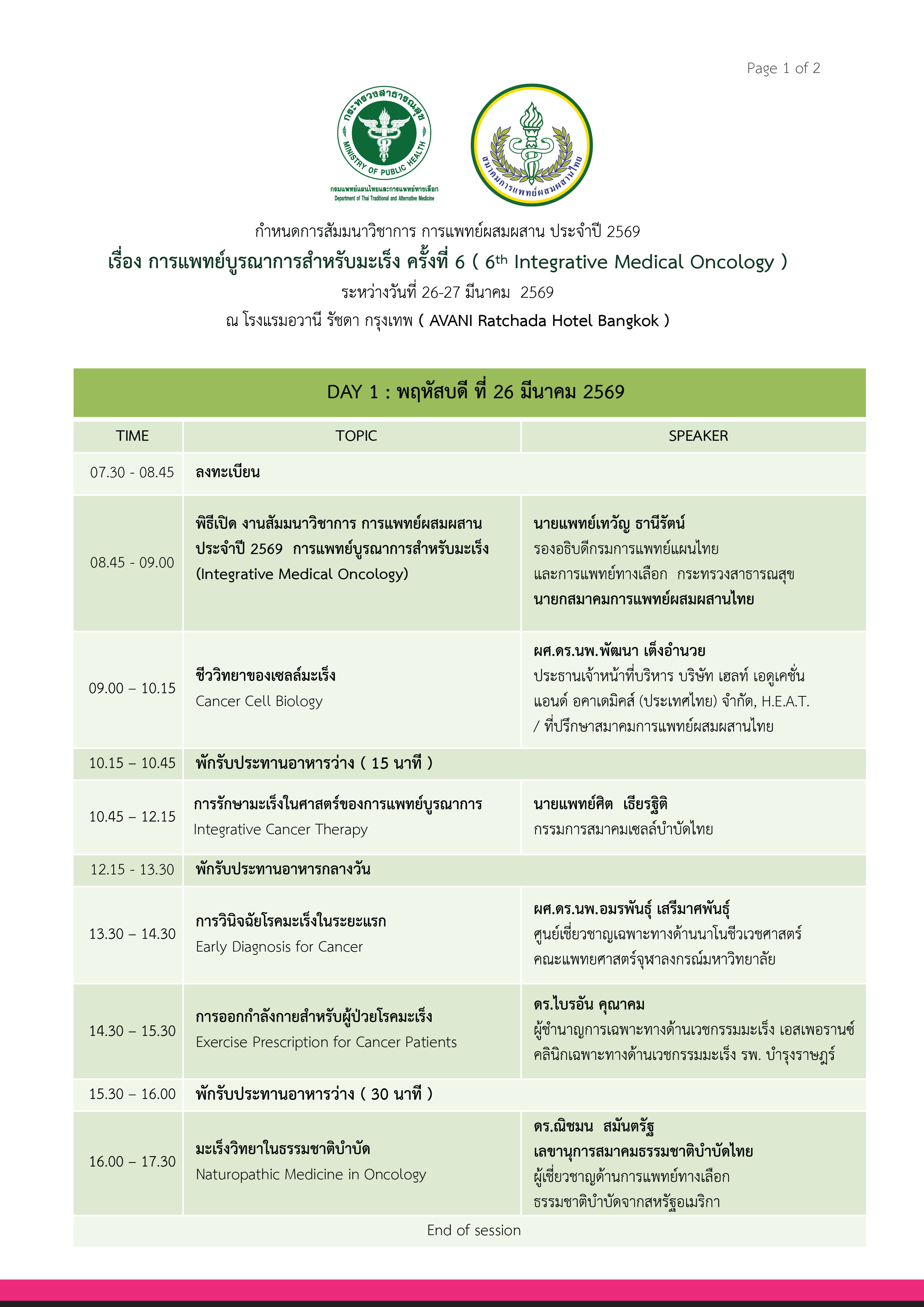 การแพทย์บูรณาการสำหรับมะเร็ง รุ่นที่ 6 (6th TIMA ONCOLOGY 2026 Conference)